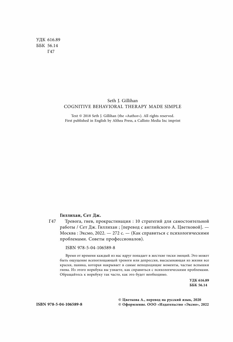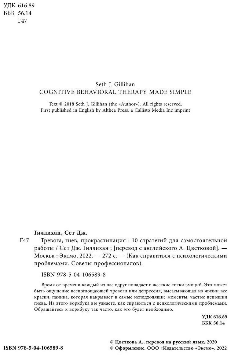 Тревога гнев прокрастинация. 10 стратегий для самостоятельной работы (Гиллихан Сет Дж.); ООО "Издательство "Эксмо", 2021