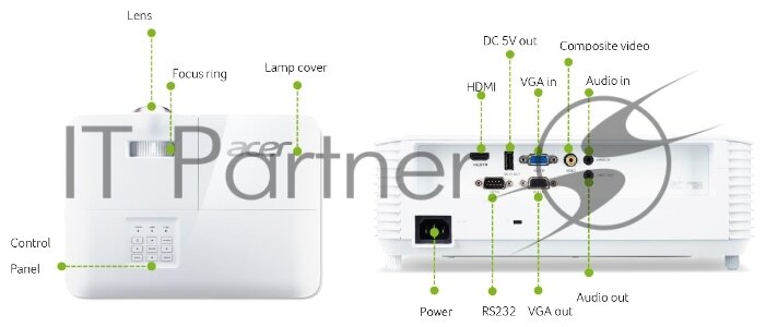 Проектор Acer S1386WH FWVGA 2xHDMI 2xVGA USB LAN. 3600 Лм Белый MR.JQG11.001 (MR.JQU11.001)