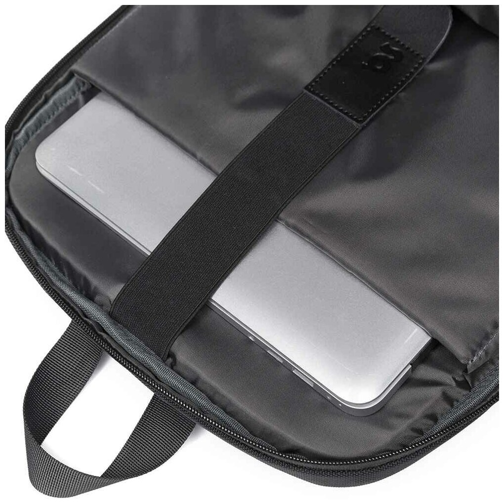 Здесь также имеется отдельный карман на эластичной крепежной ленте для ноутбука на 15,6 дюймов. Для канцелярии, документов и других мелочей предусмотрен другой отсек, ближе к передней части. Тут располагается большое количество карманов, в том числе на молнии и в виде сетки. Для закрепления ключей есть специальный карабин. На фронтальной части расположилось еще два кармана на молниях для мелочей — один из них объемный.