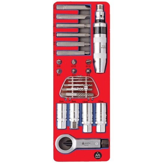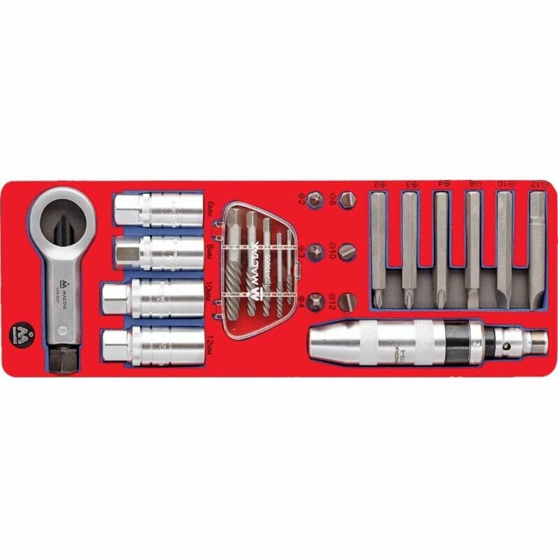 Набор инструментов для автомобиля МАСТАК с ударной отвёрткой исрользуется при создании индивидуальных рабочих мест на станциях технического обслуживания автомобилей и других предприятиях, занимающихся обслуживанием и ремонтом различной техники.