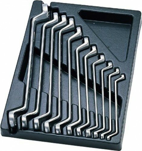 Набор инструментов 11 предметов ключи накидные King Tony в ложементе из материала PVH (поливинилхлорида) предназначен для комплектации передвижных инструментальных тележек или слесарных верстаков при создании индивидуальных рабочих мест на станциях технического обслуживания автомобилей (СТОА) и других предприятиях, занимающихся обслуживанием и ремонтом различной техники.