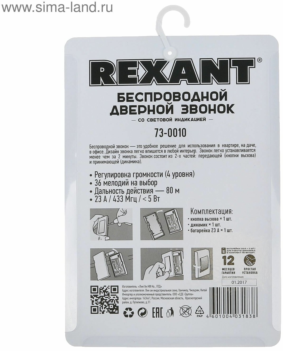 Беспроводной дверной звонок Rexant »