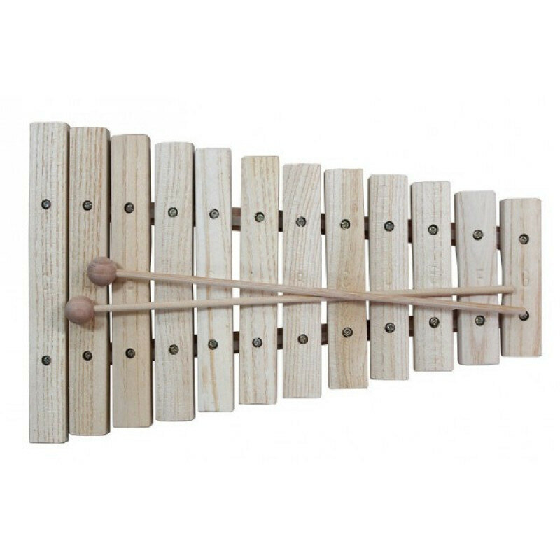 Данная модель имеет 12 деревянных брусочков, соответствующих нотам, и 2 палочки.