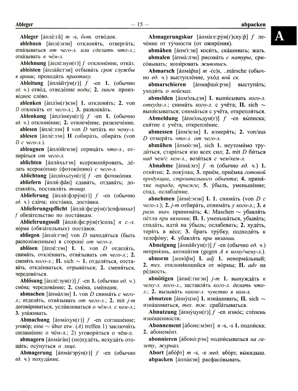 Данное издание словаря, состоящее немецко-русской и русско-немецкой части, включат около 380000 слов и словосочетаний встречающихся в современных русском и немецком языках. В составе словаря широко представлена современная лексика, отражающая различные области культуры, науки и техники. Для удобства читателя и исключения ошибок в произношении в словарных статьях представлена немецко-русская практическая транскрипция. В словарь добавлены краткие списки географических названий и список наиболее употребительных немецких сокращений, данный в конце словаря. Для удобства навигации добавлены закладки по буквам алфавита.