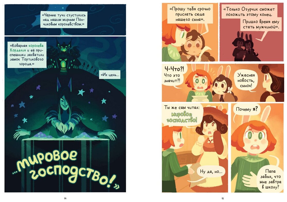 "Приключения Огрурчика. пончиковое королество"-объемная книга среднего формата. Комикс с яркими картинками читается довольно быстро, даже дочка первоклассница прочитала ее быстро самостоятельно. Шрифт крупный и отлично подходит для самостоятельного чтения.