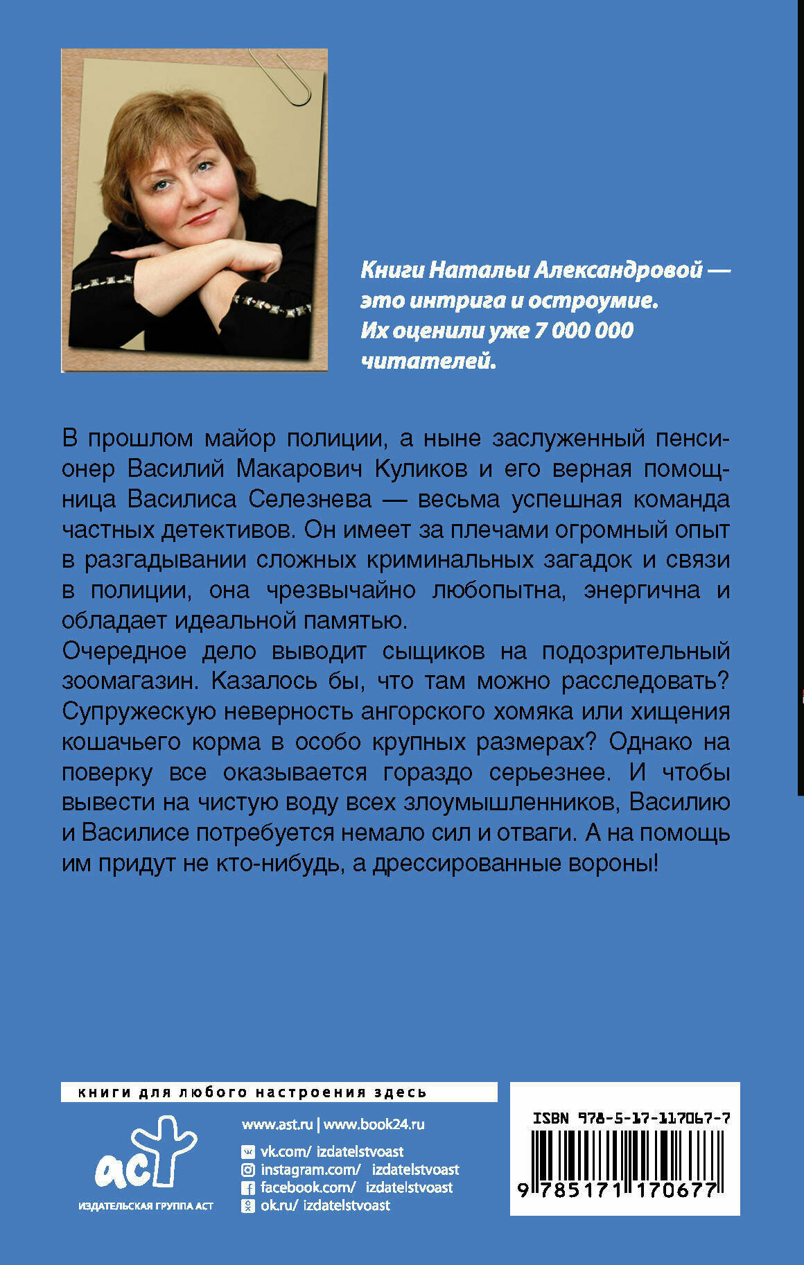 Очередное дело выводит сыщиков на подозрительный зоомагазин. Казалось бы, что там можно расследовать? Супружескую неверность ангорского хомяка или хищения кошачьего корма в особо крупных размерах? Однако на поверку все оказывается гораздо серьезнее. И чтобы вывести на чистую воду всех злоумышленников, Василию и Василисе потребуется немало сил и отваги. А на помощь им придут не кто-нибудь, а дрессированные вороны!