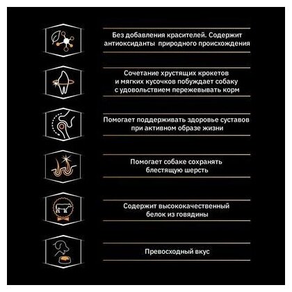 - Сочетание хрустящих крокетов и мягких кусочков побуждает собаку с удовольствием пережевывать корм