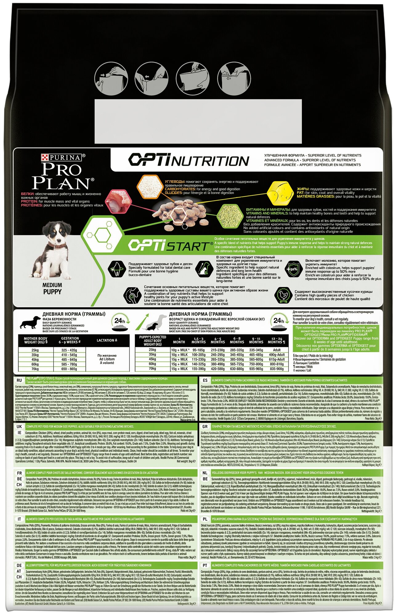 Сухой корм для щенков Pro Plan Optistart Medium Puppy с курицей 12кг