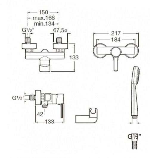 | Комплектация | Смеситель в сборе, ручной душ, шланг 1,5 м, настенный держатель для душа, монтажный комплект, инструкция, гарантийный талон |