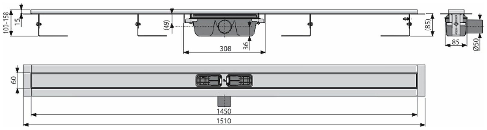 Душевой лоток AlcaPlast APZ1-1450 используется внутри помещений для отведения воды на уровне пола, может располагаться как посреди душевой, так и у стены. Предназначен для установки перфорированной решетки. Нержавеющий порог желоба формирует визуальный переход между плиткой и вставленной решеткой. Вода втекает в желоб через края и отверстия решетки. Желоб может быть установлен на открытом участке или к стене душевой поверхности.
