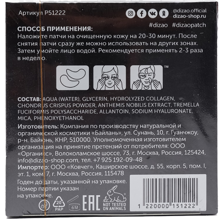 Dizao Гидрогелевые золотые патчи для глаз 100% коллаген 60 шт (Dizao ) (ЭХ9925919)