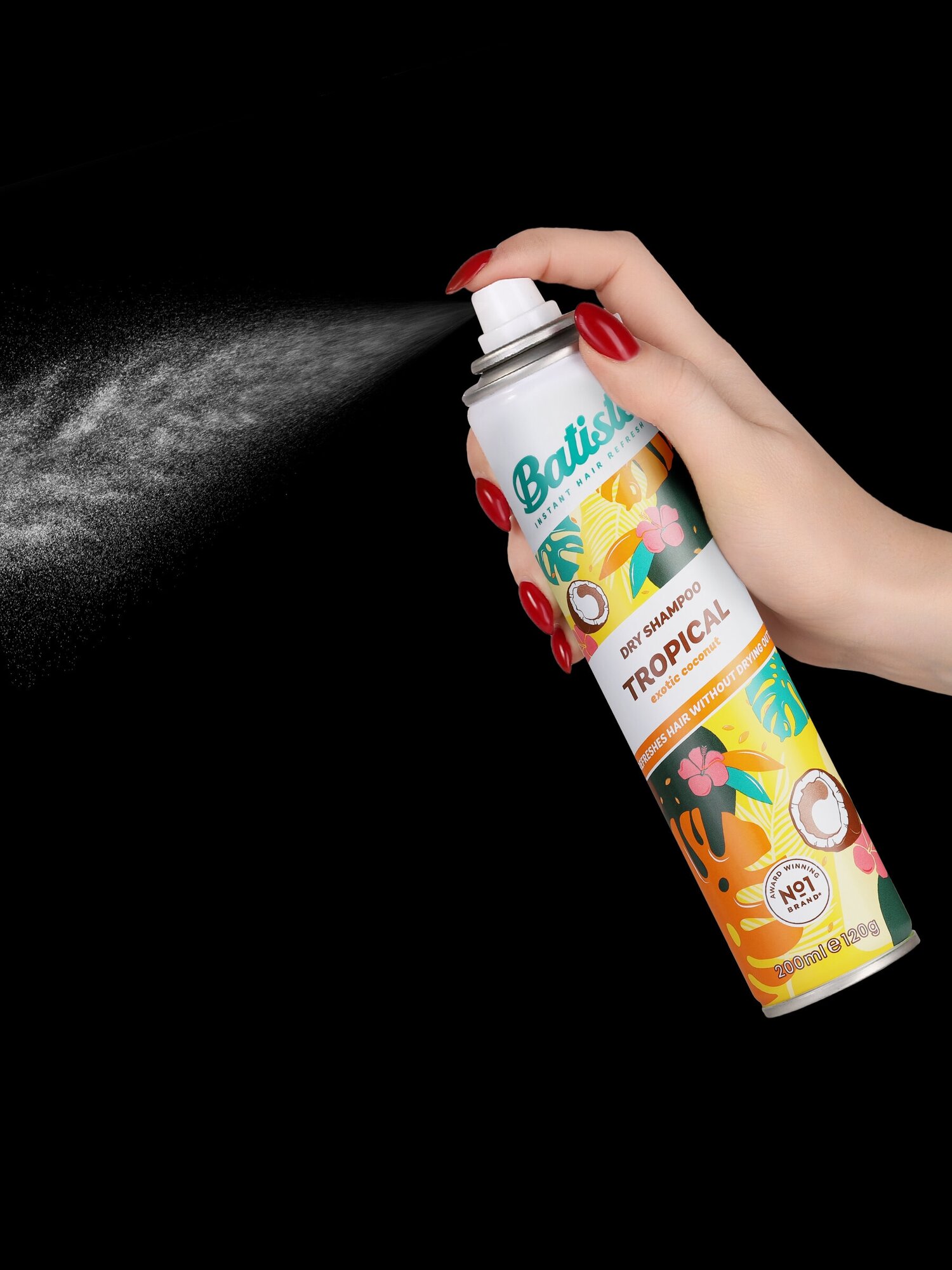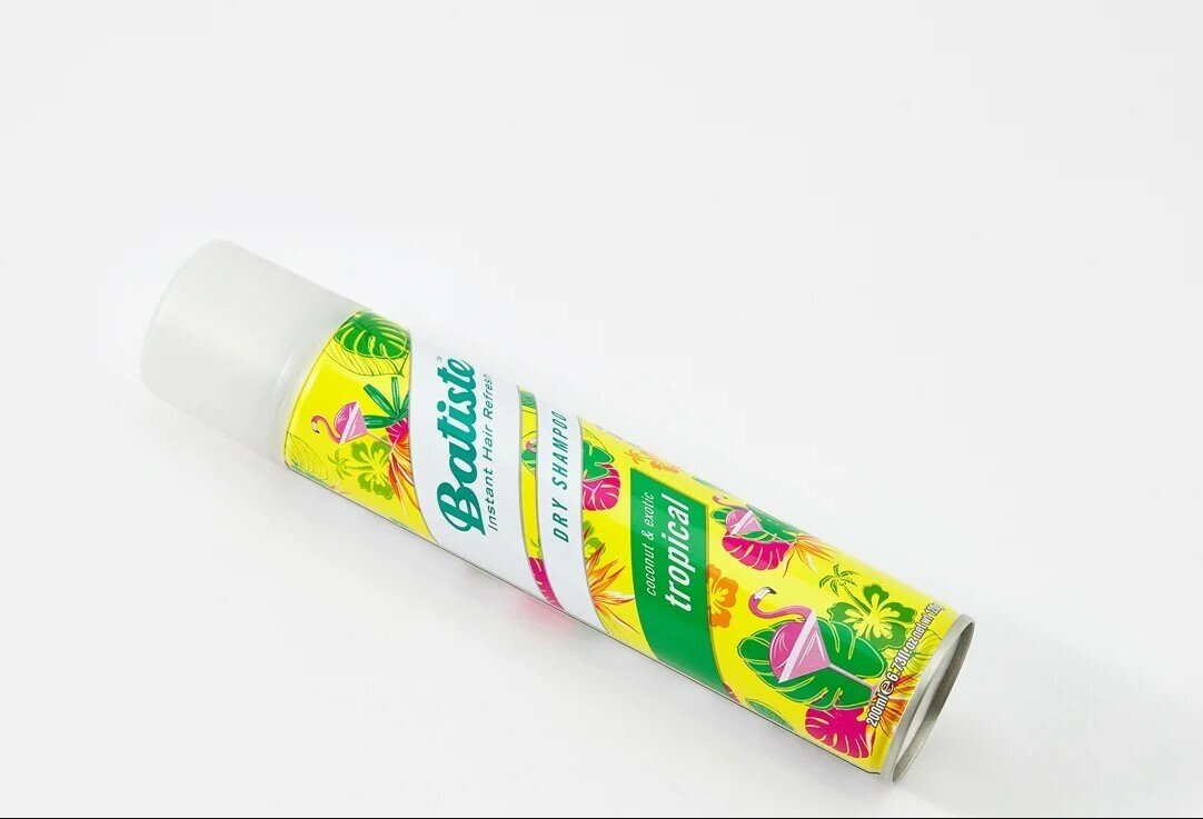 Batiste Tropical - сухой шампунь с ароматом пляжной экзотики и фруктов, предназначенный для быстрого придания волосам свежести, объема и структурности. Шампунь Batiste с тропическим ароматом даёт такой же эффект, как и оригинальный. При этом сочетание ноток парфюма достаточно тонкое и необычное: дыня, банан, кокос, слива, персик, ваниль и сандал.