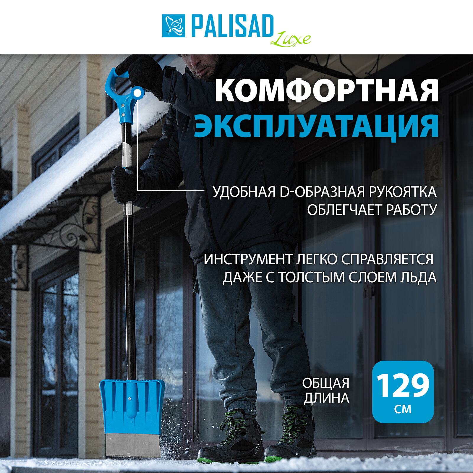 Ледоруб-скребок PROFI 25 кг р/ч 200 мм металлический черенок длина 1290 мм LUXE// Palisad PROFI LUXE