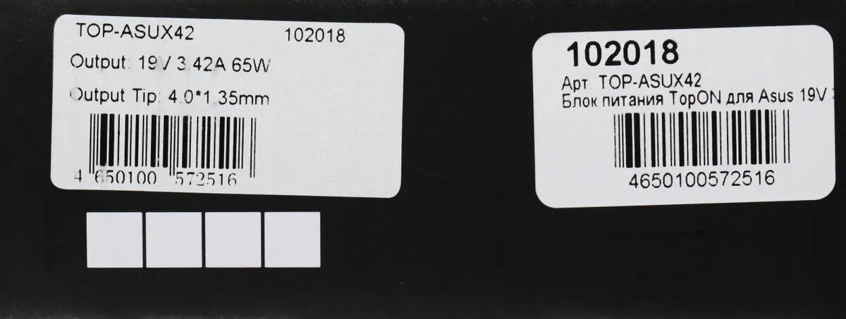 Блок питания для ультрабука Asus Zenbook UX42 UX52 UX305 VivoBook X556 Taichi 31 Series. 19V 3.42A (4.0x1.35 mm) 65W. ADP-65DW PA-1650-67. TopON TOP-ASUX42