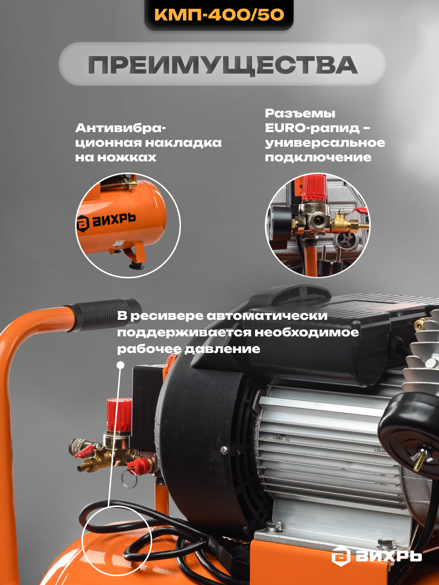 Воздушный компрессор Вихрь КМП-400/50