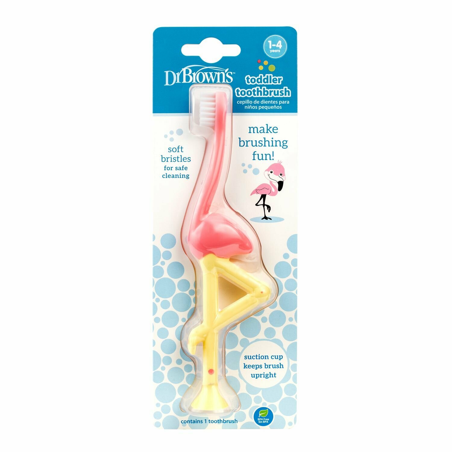 Детская зубная щетка Dr. Brown's Фламинго розовый (HG058-P4) Dr Brown's Зубная щётка для детей от 1 до 4 лет Фламинго розовый