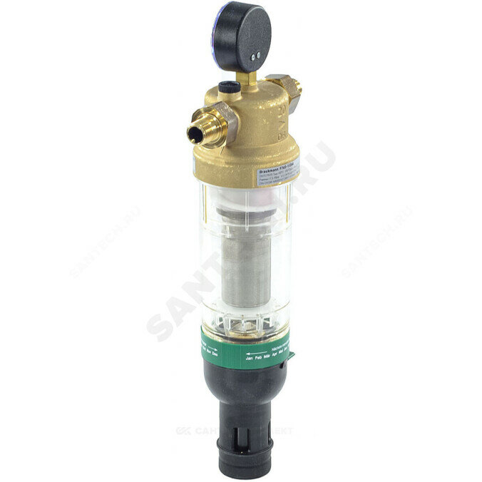 В данном фильтре применяется метод обратного промыва сетки, обеспечивающий более тщательную ее очистку. Процесс фильтрации воды при этом не прерывается, что немаловажно для непрерывного снабжения очищенной водой дома, коттеджа, крупных потребителей. Промывка фильтра осуществляется простым поворотом клапана, либо вручную, либо с применением устройства автоматического дренажирования в заданные моменты времени. Автоматический привод обратной промывки поставляется отдельно. В случае проведения промывки вручную, о необходимости очередной промывки напомнит кольцо-памятка.