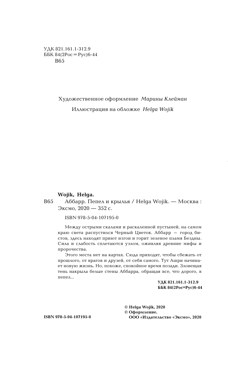 Книга: Аббарр. Пепел и крылья (Helga Wojik); Эксмо, 2020