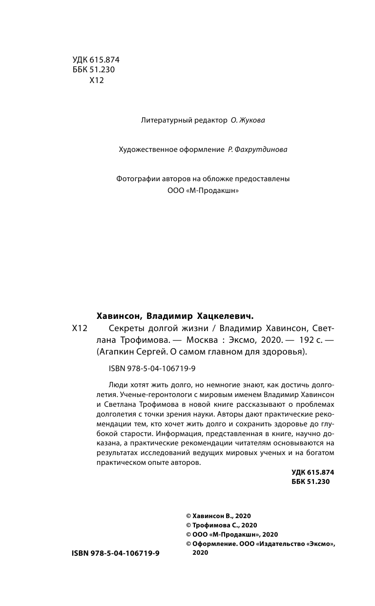 Книга: Секреты долгой жизни (Владимир Хацкелевич Хавинсон); Эксмо, 2020