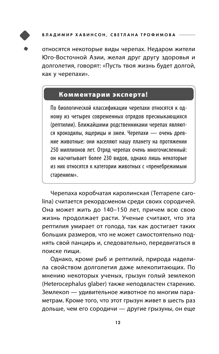 Люди хотят жить долго, но немногие знают, как достичь долголетия. Ученые-геронтологи с мировым именем Владимир Хавинсон и Светлана Трофимова в новой книге рассказывают о проблемах долголетия с точки зрения науки. Авторы дают практические рекомендации тем, кто хочет жить долго и сохранить здоровье до глубокой старости. Информация, представленная в книге научно доказана, а практические рекомендации читателям основываются на результатах исследований ведущих мировых ученых и на богатом практическом опыте авторов.