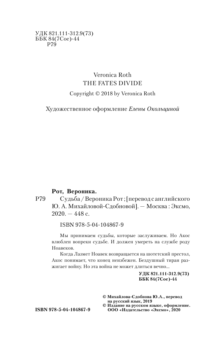 Книга: Судьба (Рот Вероника); Эксмо, Редакция 1, 2020