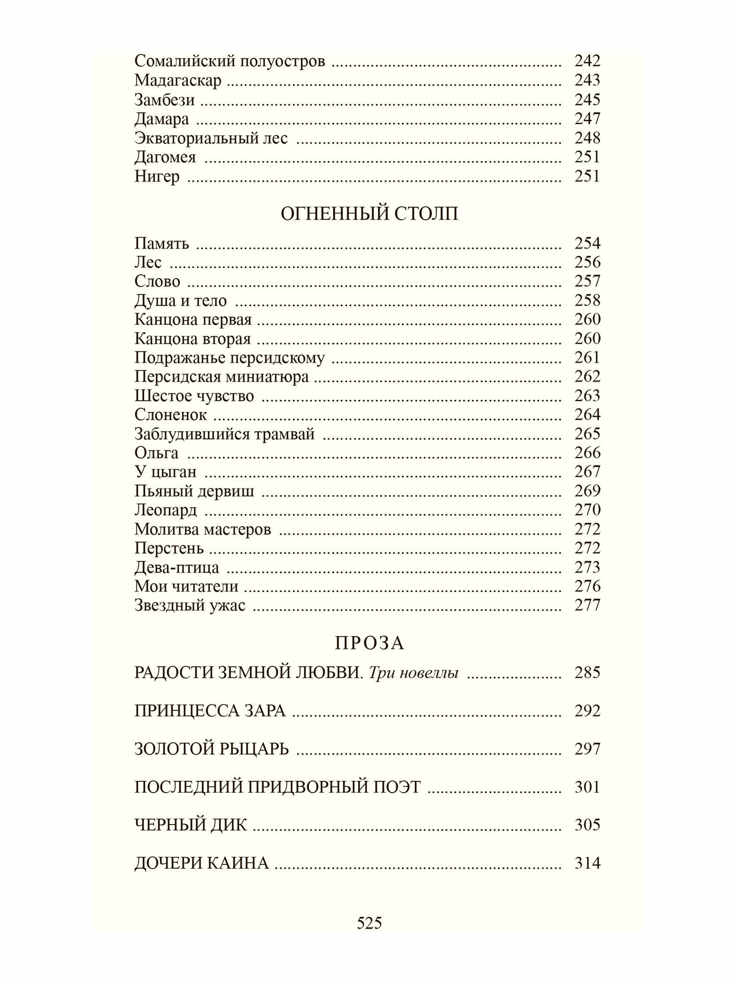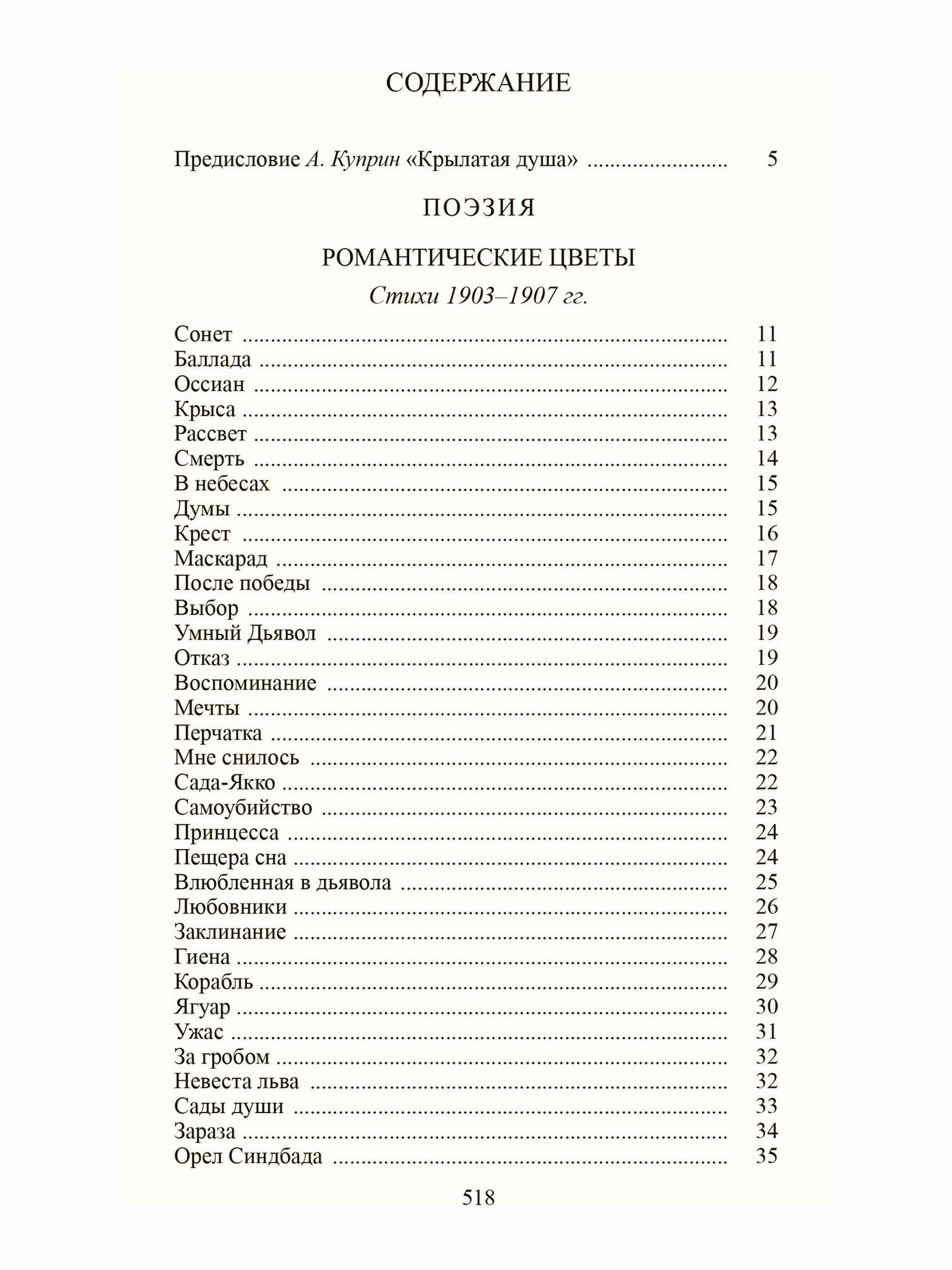 В сборник вошли поэтические циклы «Романтические цветы», «Жемчуга», «Чужое небо», «Колчан», «Костер», «Фарфоровый павильон», «Огненный столп»; а также рассказы, автобиографические записки и повесть «Веселые братья».