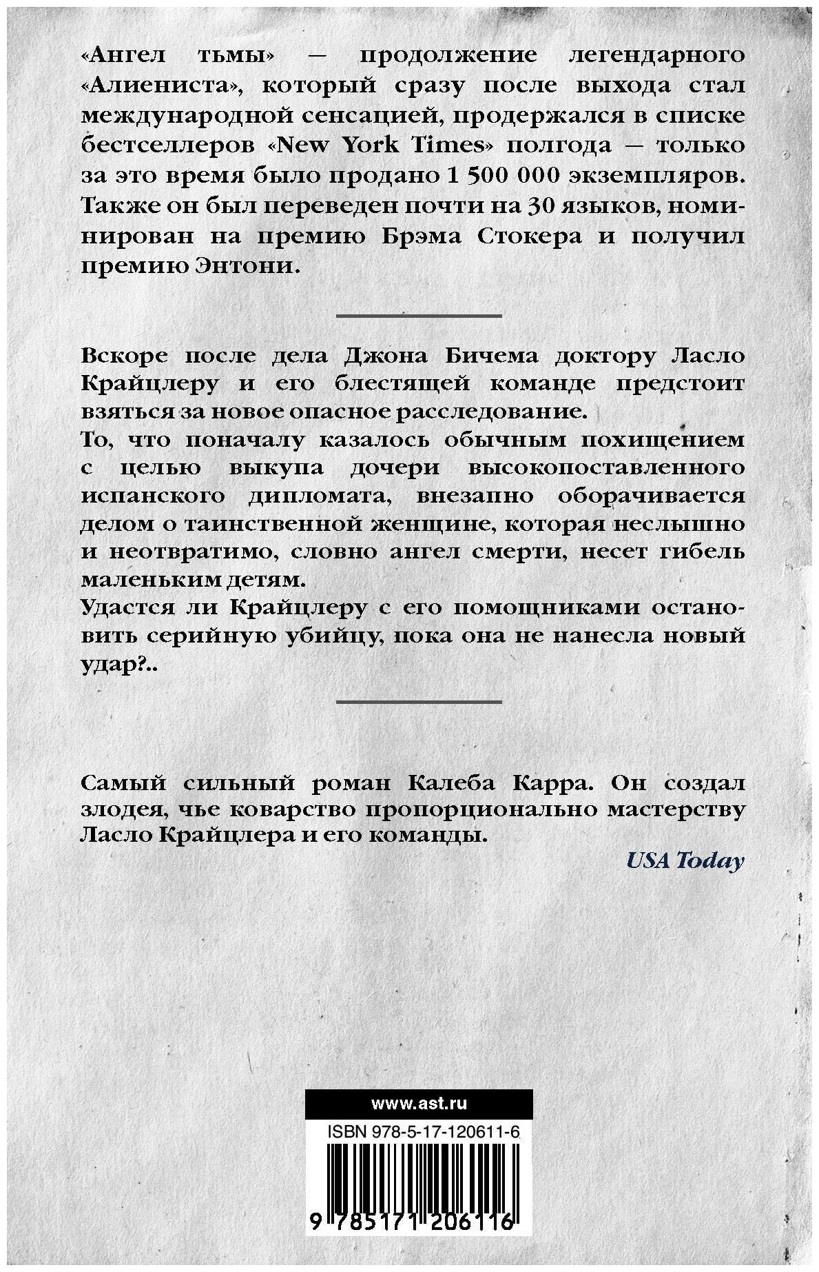 Книга: Алиенист - 2: Ангел тьмы (Калеб Карр); ООО "Издательство Астрель", 2020