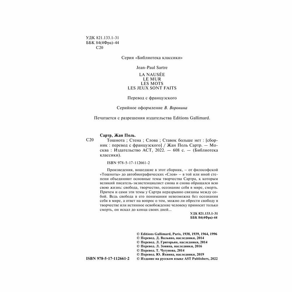 Тошнота; Стена; Слова; Ставок больше нет (Жан Сартр); ООО "Издательство Астрель", 2023