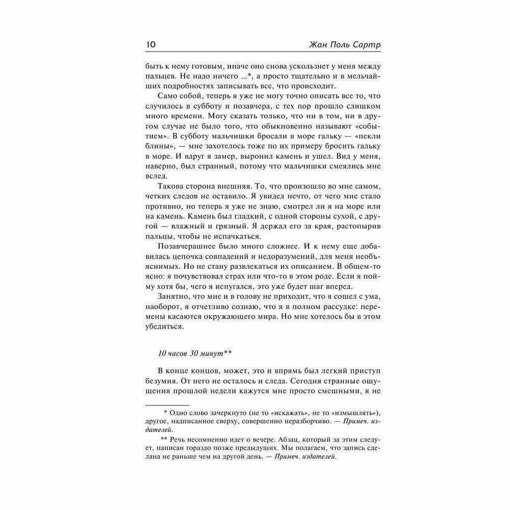 Сартр - один из моих любимы писателей, "Тошнота" была для меня практически открытием после "Одинокий" Ионеско. Поэтому хотела себе этот роман в хорошей обложке,плюс почитать другие произведения,помимо пьес. И вот тут издание меня разочаровало.Бумага гладкая, но тонкая и серая. в остальном - Суперобложка красивая,сам том насыщенного синего цвета. Произведения и автора рекомендую, издание на 3/5