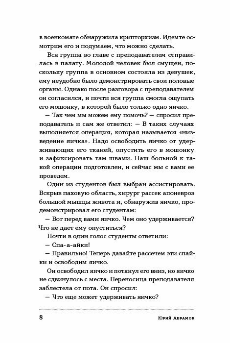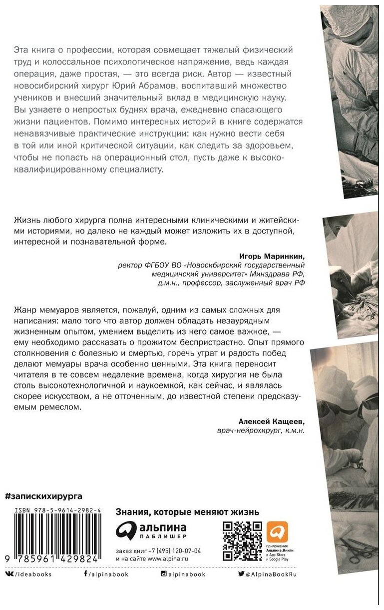 Автор — известный новосибирский хирург Юрий Абрамов, воспитавший множество учеников и внесший значительный вклад в медицинскую науку.