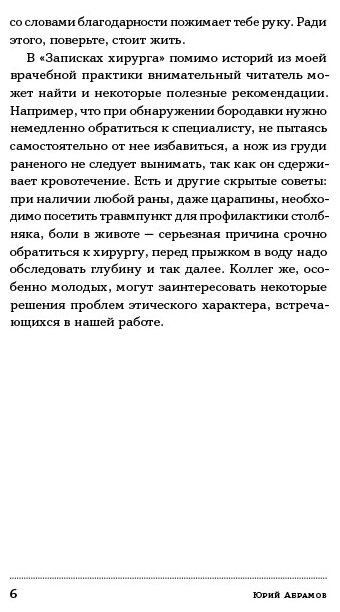 Как всегда безгранично восхищаюсь трудом хирургов - какая же сложная профессия. Читаю много подобных книг о жизни и работе врачей, данная книга понравилась. Описаны будни советского хирурга - очень интересно: трагедии пациентов, но также и счастливые случаи, фрагменты операции, нюансы работы советских врачей. Есть и поучительные истории, приходит понимание как делать точно нельзя, но и без юмора никак.