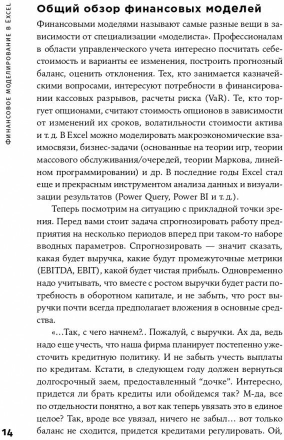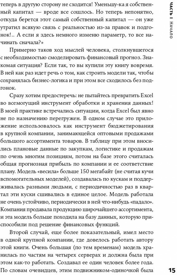 «Я умышленно строю книгу так, чтобы в ней был охвачен целый спектр смежных экономических и деловых дисциплин: бухгалтерского учета, анализа бизнес-процессов, финансов предприятия и т. д. Надеюсь, что эти „нелирические отступления“ помогут читателям не только расширить профессиональный кругозор, но и смотреть на модели не просто как на набор чисел в Excel, а как на часть большой финансово-экономической работы любой компании».