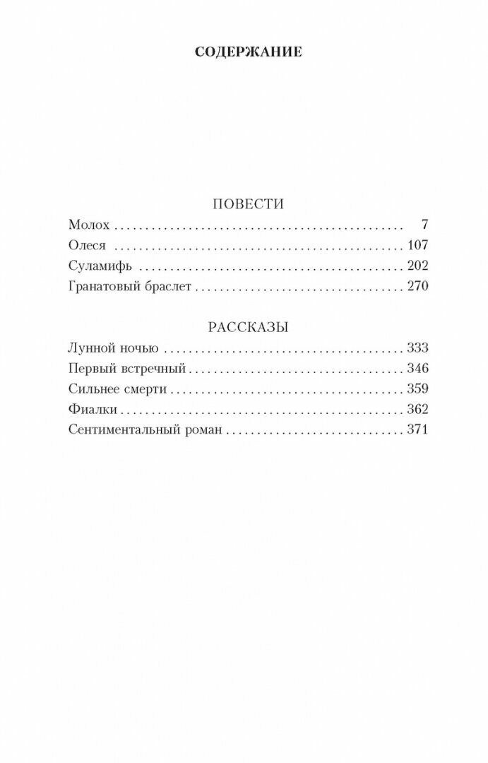 Куприн мастер в описании любви, в описании её зарождения, её боли, её радости, её продолжения с завершением. Очень точно и очень истинно он пишет, так что за душу берёт, ведь каждый и себя узнать может в его произведениях. Очень советую прочитать в этом сборнике "Гранатовый браслет" и "Сильнее смерти" для любителей "стекла". Из минусов могу сказать, что в этой книге мне не хватило рассказа "Сирень". Спасибо.