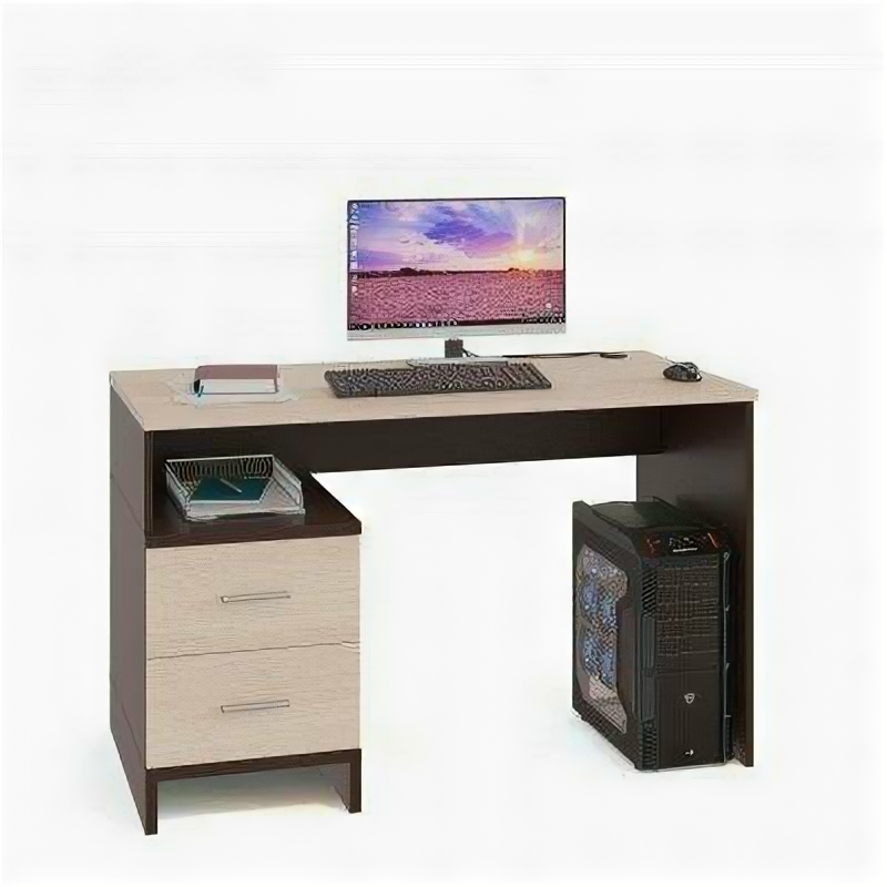 Тип: компьютерный стол. Форма стола: прямоугольная. Материал столешницы: ЛДСП. Цвет стола: бежевый, венге. Материал опор: ЛДСП. Описание: Компьютерный стол Сокол-Мебель КСТ-114 станет отличным помощником в организации рабочего места. Лаконичный стиль исполнения одинаково хорошо подойдет и для домашней обстановки, и для офисного интерьера. Преимущества: - универсальное хранение — в систему хранения включены как вместительные выдвижные ящики, так и удобная открытая ниша; - широкая столешница — на поверхности шириной 120 cм можно разместить не только компьютер и нужные бумаги, но и множество других полезных предметов; - практичное исполнение — конструкция предусматривает отдельное место для системного блока компьютера, а также специальные отверстия для проводов. Компьютерный стол Сокол-Мебель КСТ-114 собирается только так, как представлено на изображении.Вес стола 42 кг.. Конструкция: классический. Тумба : 1. Выдвижные ящики: 2.