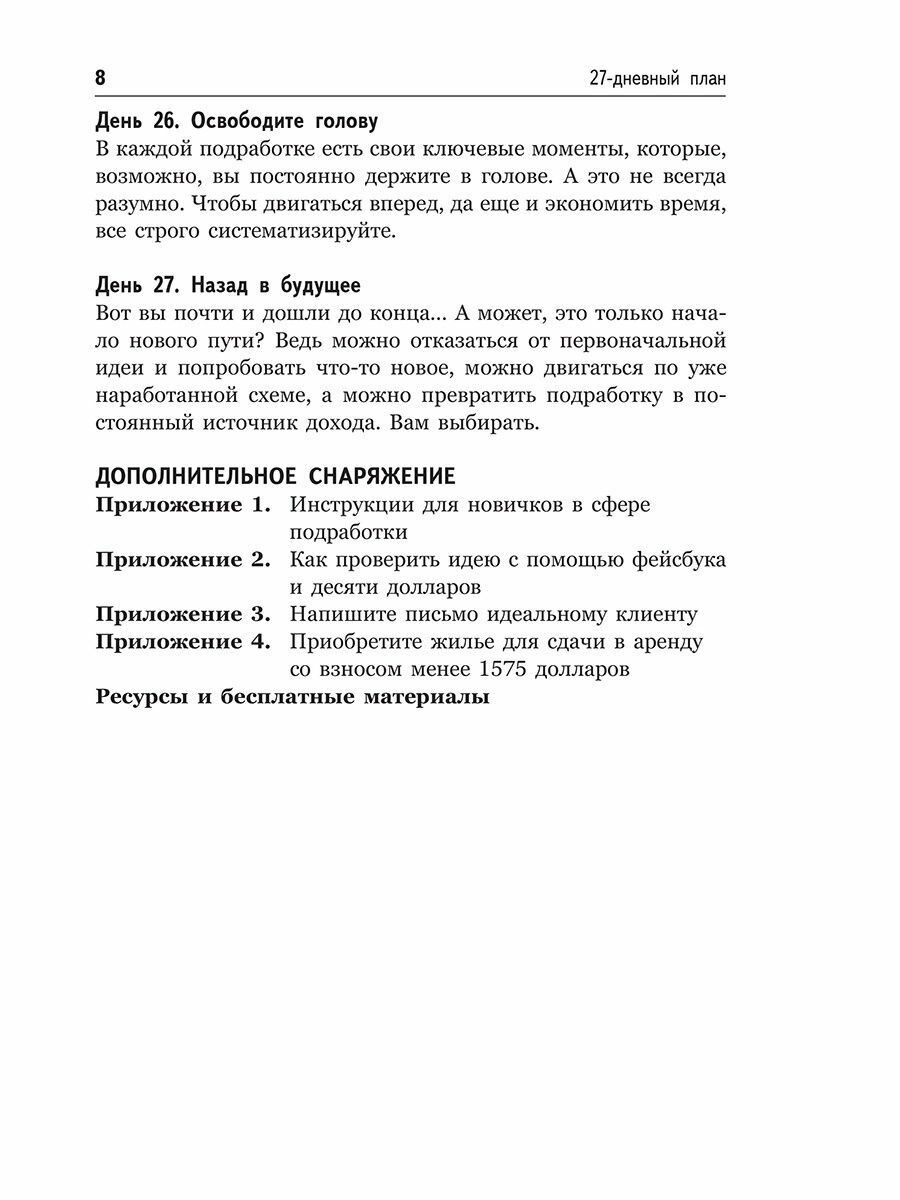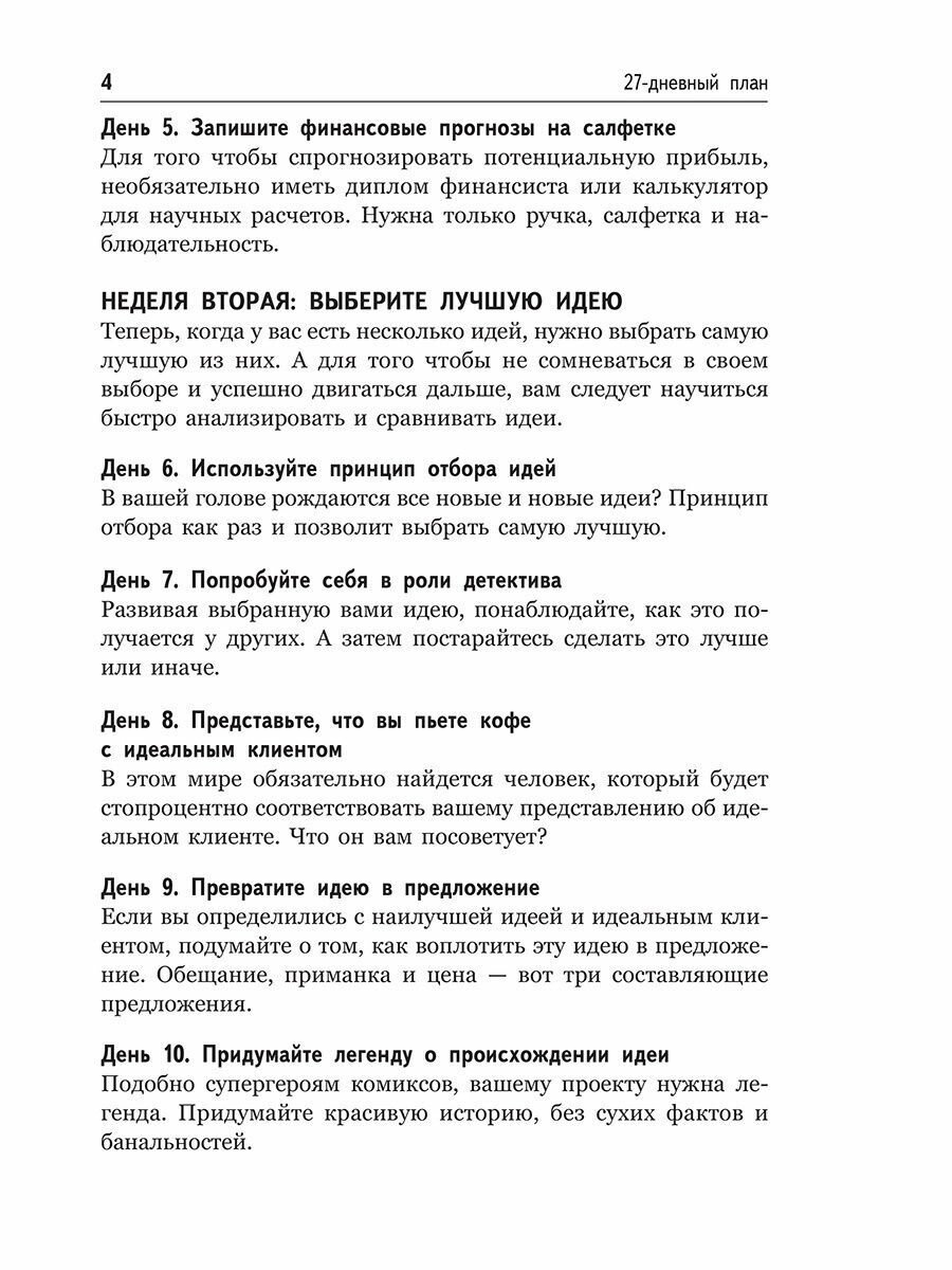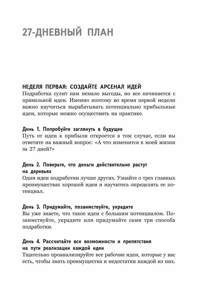 Автор предлагает читателю конкретный 27-дневный план, который поможет продумать и запустить идею, систематизировать действия и уже скоро начать получать дополнительный доход.