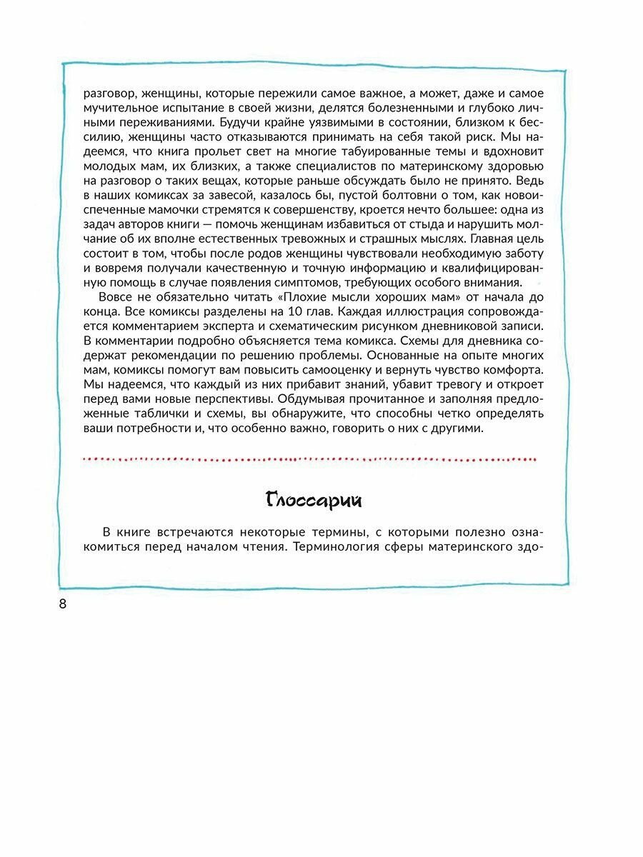 Очень понравилось оформление книги: плотная обложка, внутри красочные картинки, впечатление, что у книги два автора: и сам автор и художник. Кстати, обе женщины. Рисунки художника выполнены в стиле "мысли человека", комиксов. Содержание тоже очень понравилось. Советую мамам и тем, кто собирается ими стать. Отличный подарок для будущей мамы!
