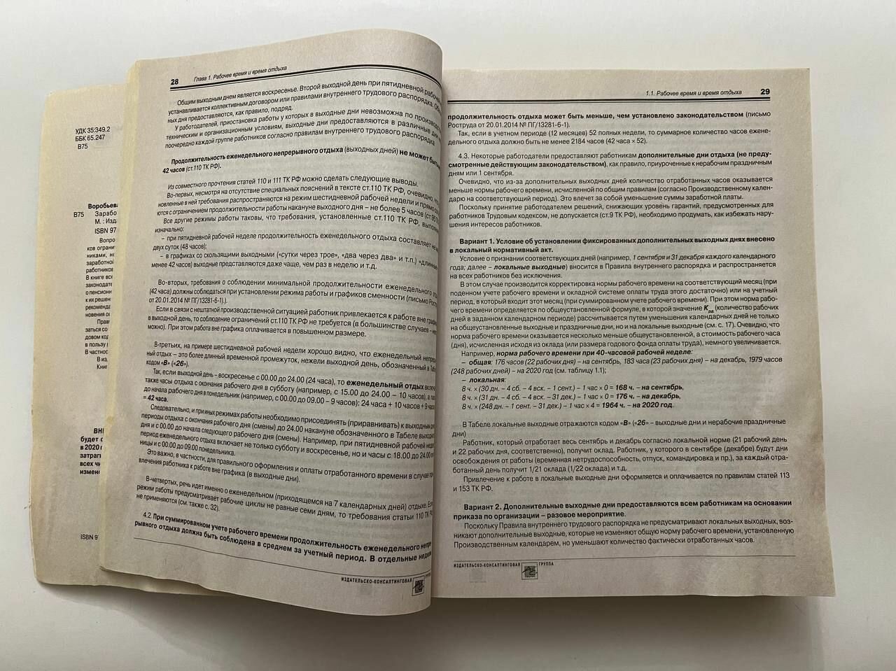 Добрый вечер! Недавно приобрела книгу, дочитала до 3 главы. В книге учтены изменения в законодательстве, судебная практика, расчеты, даны примеры, однако содержатся ошибки при расчетах, возможно опечатки, например, на стр 47 норма при нормальной продолжительности рабочего времени в январе и феврале и на стр. 65 в примере 2.3 при расчете рабочих смен и часов при временной нетрудоспособности при суммированном учете рабочего времени. Хотелось бы еще,конечно, чтобы поподробнее написали продолжительность рабочего времени для педагогических и медицинских работников в зависимости от должности. А в целом, изложение материала очень понравилось, хотя я только начала читать.