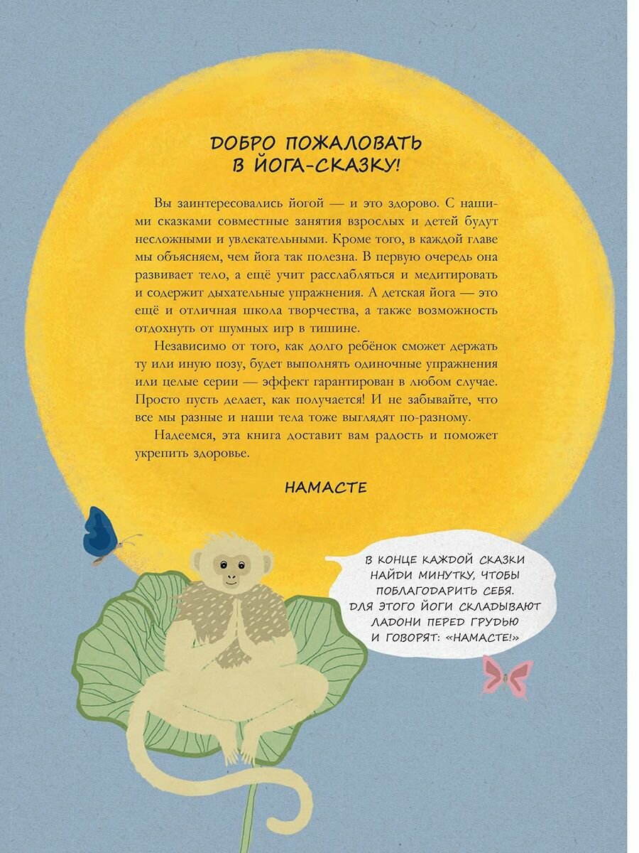 Все асаны достаточно просты для начинающих маленьких йогов и увлекательно описаны в виде разнообразных образов.
