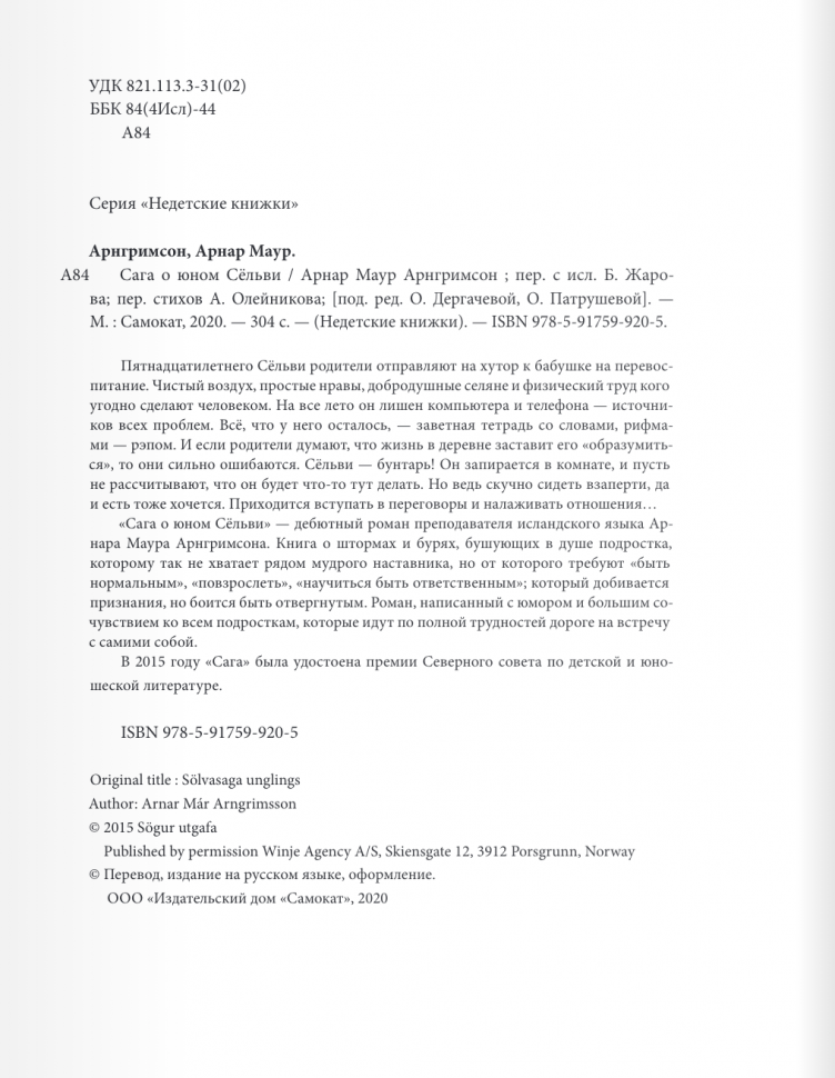 Книга: Сага о юном Сельви (Арнар Маур Арнгримсон); Издательство "Самокат", 2020