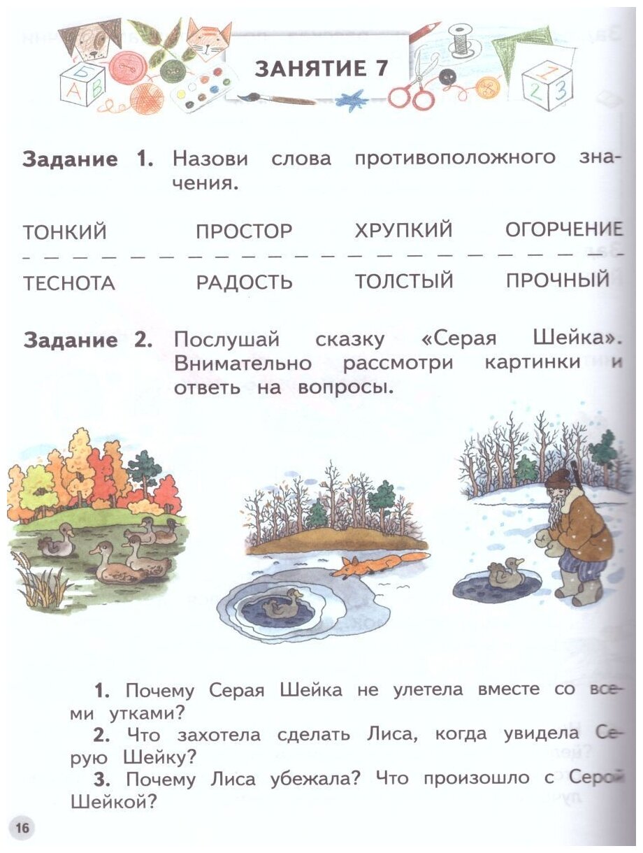 .Предлагаемые варианты заданий в пособиях серии предполагают активное включение ребёнка в познавательную деятельность, с учётом его сильных и слабых сторон развития, и возможность учёта индивидуальных особенностей при подсказке и помощи взрослых.
