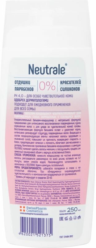 Бальзам-кондиционер одобрен дерматологами. Предназначен для ежедневного использования. Для всей семьи. Формула с нейтральным pH адаптирована для особо чувствительной кожи. Уровень pH варьирует в пределах 3,5-4,5. Не содержит отдушки, красителей, парабенов, силиконов.