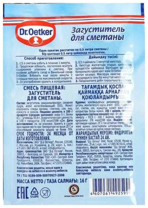 Сервис сравнения цен СкидкаГИД предлагает сравнить цены на товар «Загуститель Dr. Oetker для сметаны 16г»