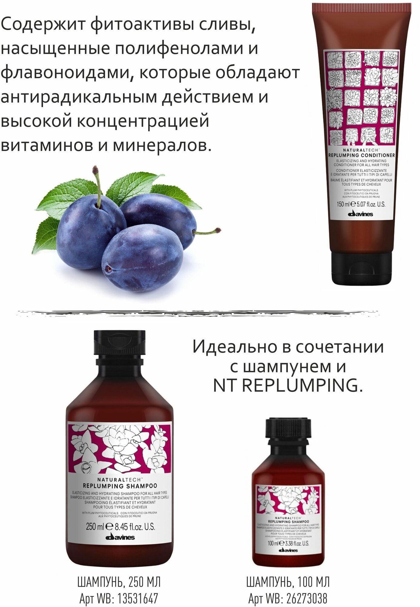 Уплотняющий кондиционер ухаживает и придает волосам эластичность, объем и плотность. Содержит фитоактивы сливы, насыщенные полифенолами и флавоноидами, которые обладают антирадикальным действием.