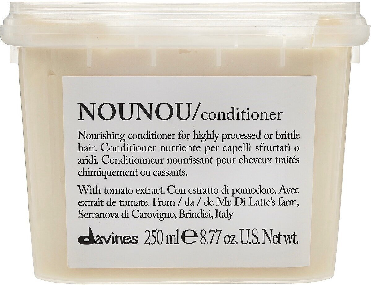 Продукты семейства NOUNOU предназначены для сухих или волос, химически поврежденных в результате мелирования, обесцвечивания, перманентной завивки или выпрямления. Они содержат экстракт томата сорта Фьяскетто из Торре Гуачето, выращенного в рамках программы Slow Food Presidium. Формула, насыщенная углеводами и протеинами, обладает мощной питающей способностью и антиоксидантным действием благодаря витамину С. Экстракт, полученный из мякоти томата, имеет высокие оздоравливающие и питательные свойства.
