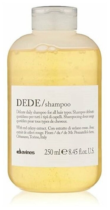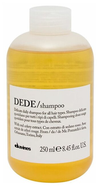 | Применение | нанесите немного шампуня на влажные волосы, массируя, вспеньте. Тщательно промойте волосы. При необходимости повторите, и для закрепления используйте DEDE кондиционер. |