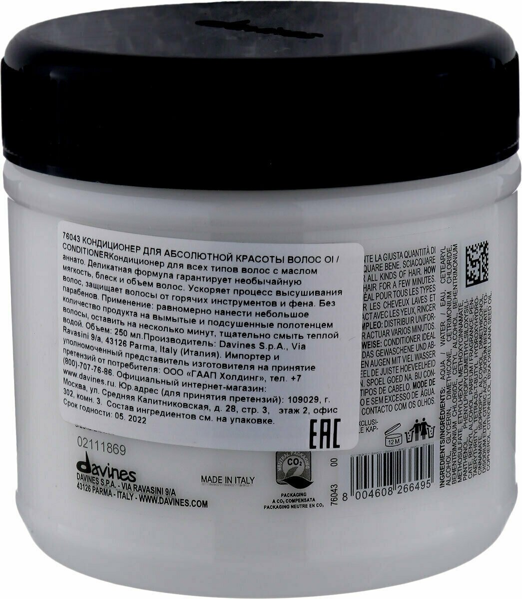 На сегодняшний день товар «Davines Кондиционер для абсолютной красоты волос 250 мл (Davines ) (DA76008)» можно купить с кешбеком в 1 магазине: Яндекс.Маркет