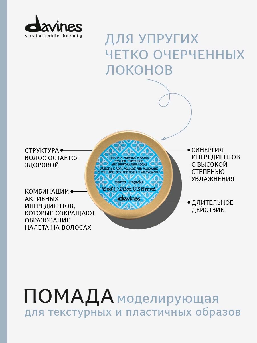 | Полное наименование | Davines More Inside Forming Pomade - Помада моделирующая для текстурных и пластичных образов, 75 мл |