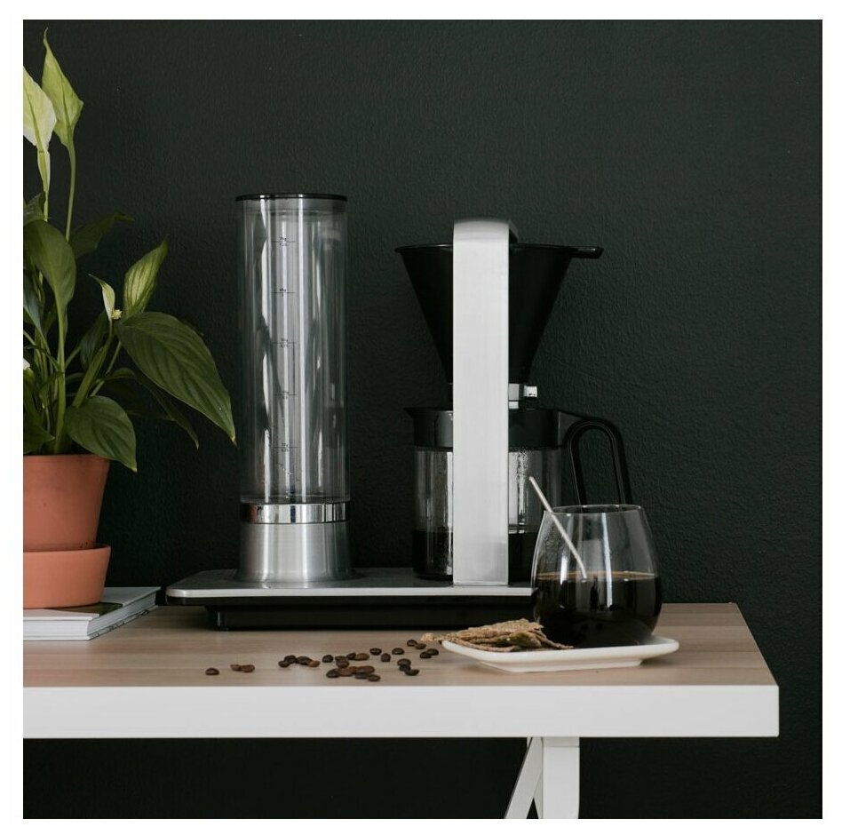 Есть несколько факторов успеха, которые необходимы для приготовления идеального кофе, и правильная температура — один из них. В отличие от большинства других кофеварка Wilfa Presisjon сохраняет температуру от 92 до 96 градусов от первой до последней капли. Уникальная технология: насос полностью опустошает бункер воды при каждом заваривании, поэтому при заваривании всегда будет свежая чистая вода. Съёмный резервуар для воды — всегда чистая вода: бак для воды съёмный — это позволяет легко доливать свежую воду при приготовлении кофе, при этом вода всегда будет чистой. На резервуаре для воды имеется мерный индикатор, на котором отмечается, сколько воды необходимо по отношению к граммам кофе. Эта функция отличает кофеварку от традиционных кофеварок, где пустую колбу удобно использовать для измерения объёма воды при приготовлении нового кофе. Таким образом, новый кофе принесёт с собой остатки старого кофе, и кофе будет иметь вкус старого. Для каждого микроскопического остатка кофе, оставшегося после предыдущего использования (это кофейный жир, который застревает в колбе), воронка будет слегка ароматизирована старым кофе. Через некоторое время новый кофе станет похож на старый кофе. Именно по этой причине Wilfa Presisjon предлагает съёмный резервуар для воды, в который вы можете заливать воду. Производительность одобрена Norsk Kaffeinformasjon, которая устанавливает требования к температуре воды и времени контакта с водой. Чтобы добиться от кофе максимального вкуса и аромата, абсолютно необходимо, чтобы кофеварка работала с правильной температурой воды с самого начала и на протяжении всего времени заваривания. В тоже время важно, чтобы вода не протекала через кофейный порошок слишком быстро или слишком долго. Небольшие отклонения позволяют получить либо кислый, либо горький кофе. Капельный стоп (контроль потока): регулируемый ограничитель капель позволяет установить количество завариваемого кофе и приготовить идеальный кофе независимо от его количества. Держатели фильтров имеют регулируемое отверстие на нижней стороне, так называемый регулятор потока. Управление потоком позволяет вам контролировать скорость воды и, следовательно, экстракцию кофе, так что вы можете каждый раз варить один и тот же хороший кофе, будь-то одна или десять чашек. Все ароматы вашего кофе будут полностью использованы благодаря уникальной насадке, которая равномерно распределяет воду по кофе.