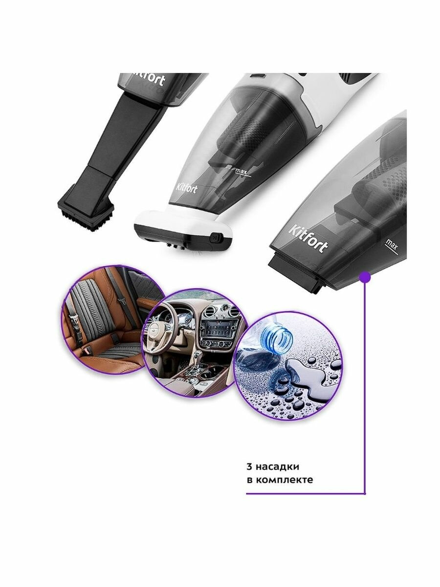 Автомобильный пылесос KITFORT КТ-557 сухая сбор жидкостей уборка чёрно-белый Ручной пылесос КТ-557