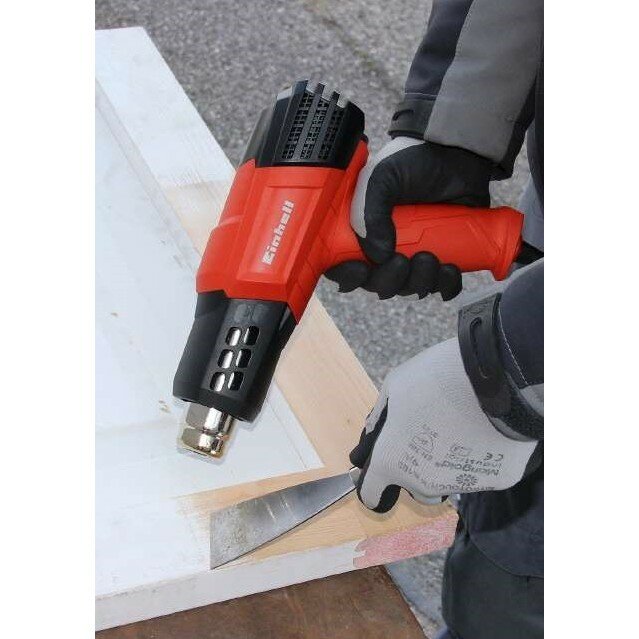 Новый ручной фен Einhell серии Expert предназначен для удаления старых лакокрасочных покрытий, пайки, формирования пластика, удаления клея, быстрой сушки и усадки различных материалов. Фен Einhell можно использовать для работы с различными материалами, благодаря свободной регулировке температуры с 9 установками при помощи регулировочного колесика 50-550° (с шагом ≈ 62°) и контроля скорости потока воздуха с 3-мя режимами работы. Наличие 4х насадок, делают работу с феном Einhell легкой и удобной.